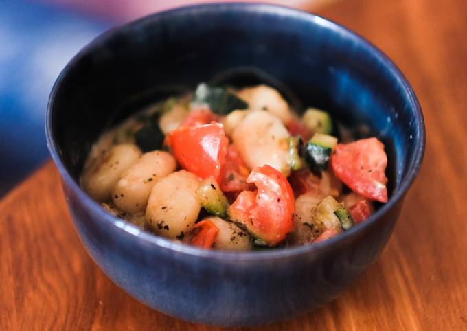 Gnocci-Gemüsepfanne mit Käsesauce. Zucchini und Tomaten in Würfel schneiden. Wie Vorzubereiten Gnocci-Gemüsepfanne mit Käsesauce Das Ist Köstlich Folgen Sie Wie Unten. Hallo, die Gemüsepfanne hat uns ausgezeichnet gut geschmeckt.