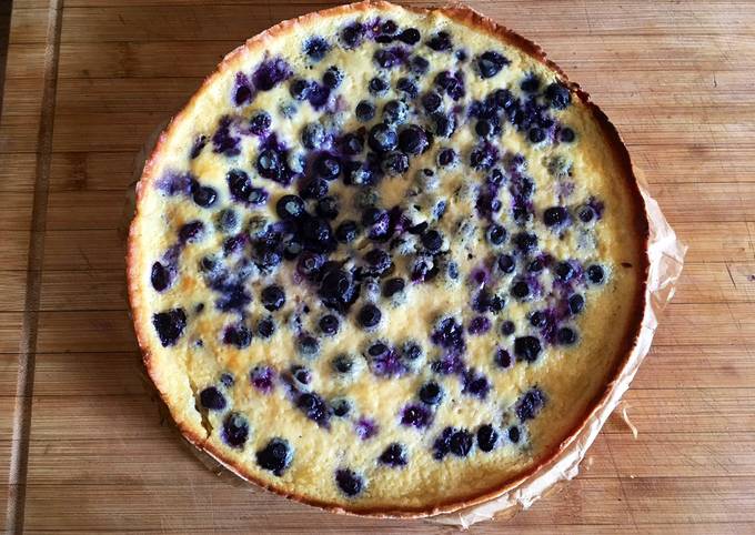 - In die vorgebackene Tarte gießen, Blaubeeren hineingeben und nochmal ca. 25-30 min goldbraun backen. Die Füllung sollte ganz fest sein und die Creme eine schöne leichte Bräunung haben..