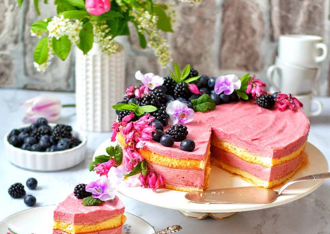 - Den Biskuitboden aus der Form nehmen, 1 x durchschneiden und einen Teil des Biskuits wieder in die Form legen. Die Hälfte der Rhabarber Masse auftragen, mit dem zweiten Biskuitteil zudecken, den Rest der Masse oben drauf verteilen. Im Kühlschrank, am besten über Nacht, erkalten lassen. Vor dem Servieren nach Belieben mit Früchten dekorieren. Guten Apettit!!.