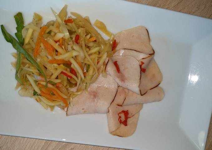 - Der Salat wird zum Beispiel: mit gebratener Hähnchen- oder Entenbrust, Bauchfleisch und Garnelen oder auch mit... siehe unten.