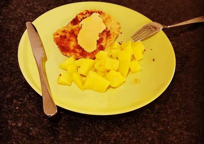 - Eier und Gewürze in einem Shaker vermischen. Selleriescheiben panieren und bei niedriger Hitze braten bis sie gold-braun sind Kartoffeln garen, Brühe abgiessen, Kartoffeln blanchieren. Hollandaise wärmen. Ein großes Stück Butter in den Topf geben, schmelzen und leicht salzen. Kartoffeln in der Butter schwenken..