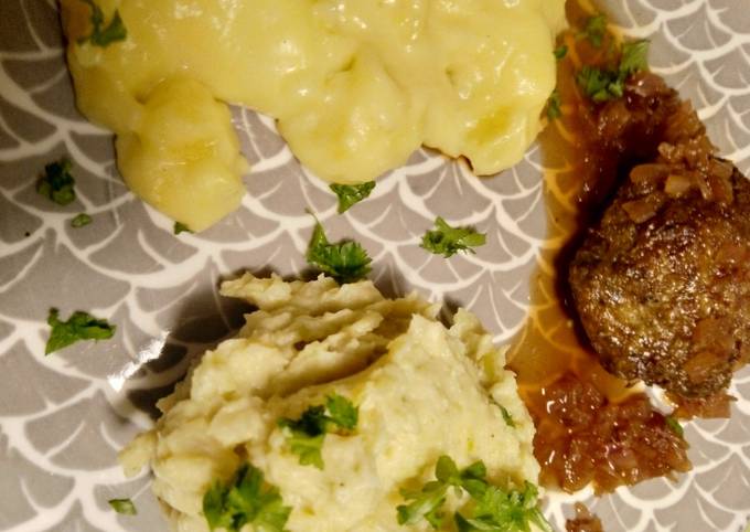 - Brauchen von Beilagen: Kartoffelpüree und Frikadellen.
