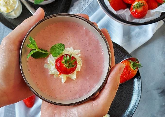 Hallo. Kalte Erdbeer-Cremesuppe könnte eines der köstlichen Menüs sein, um mit der Familie zu essen. Keine Angst vor Schwierigkeiten, denn ein gesundes Menü zuzubereiten dauert nicht lange. Das Rezept ist einfach und die benötigten Zutaten sind leicht zu finden. Du kannst haben Kalte Erdbeer-Cremesuppe using 5 zutaten und 4 zubereitung. So erreichen sie es.