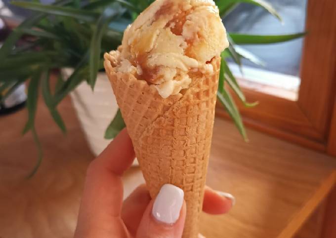 - In eine Form oder Box das Eis geben und in den Gefrierschrank stellen. *Ich hab hier Karamell drüber gegeben und noch eine Prise Salz.*.