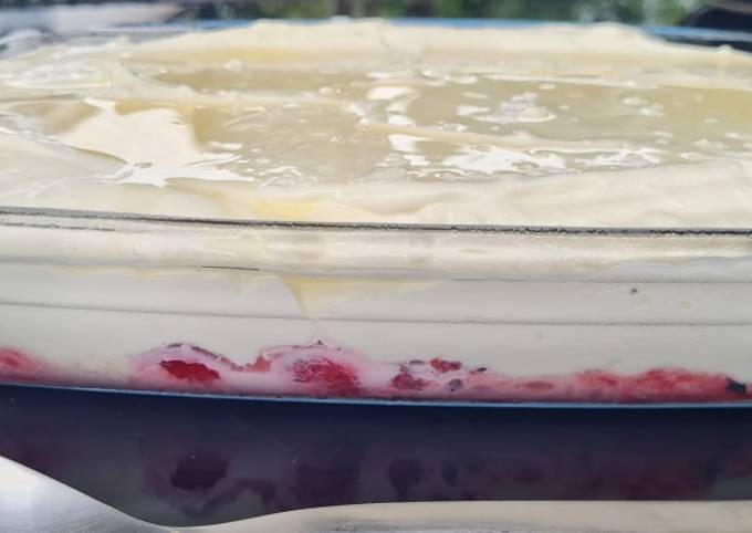 - Mascarpone Creme auf die Himbeeren verteilen und alles kühl stellen..